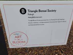 Triangle Bonsai Society SignTriangle Bonsai Society at the Art in Bloom exhibit. Photo Credit: Peter BayliesLiked it? Take a second to support Carmen Baylies on PayPal or Patreon! [wp_paypal button=donate name=Blog] Published By Carmen Baylies